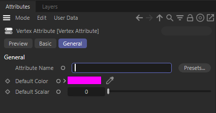 This shader gives you access to color and scalar per-vertex attributes. This can be used as an alternative to the more flexible Color User Data and Scalar User Data nodes, which can access point, object and vertex attributes.
