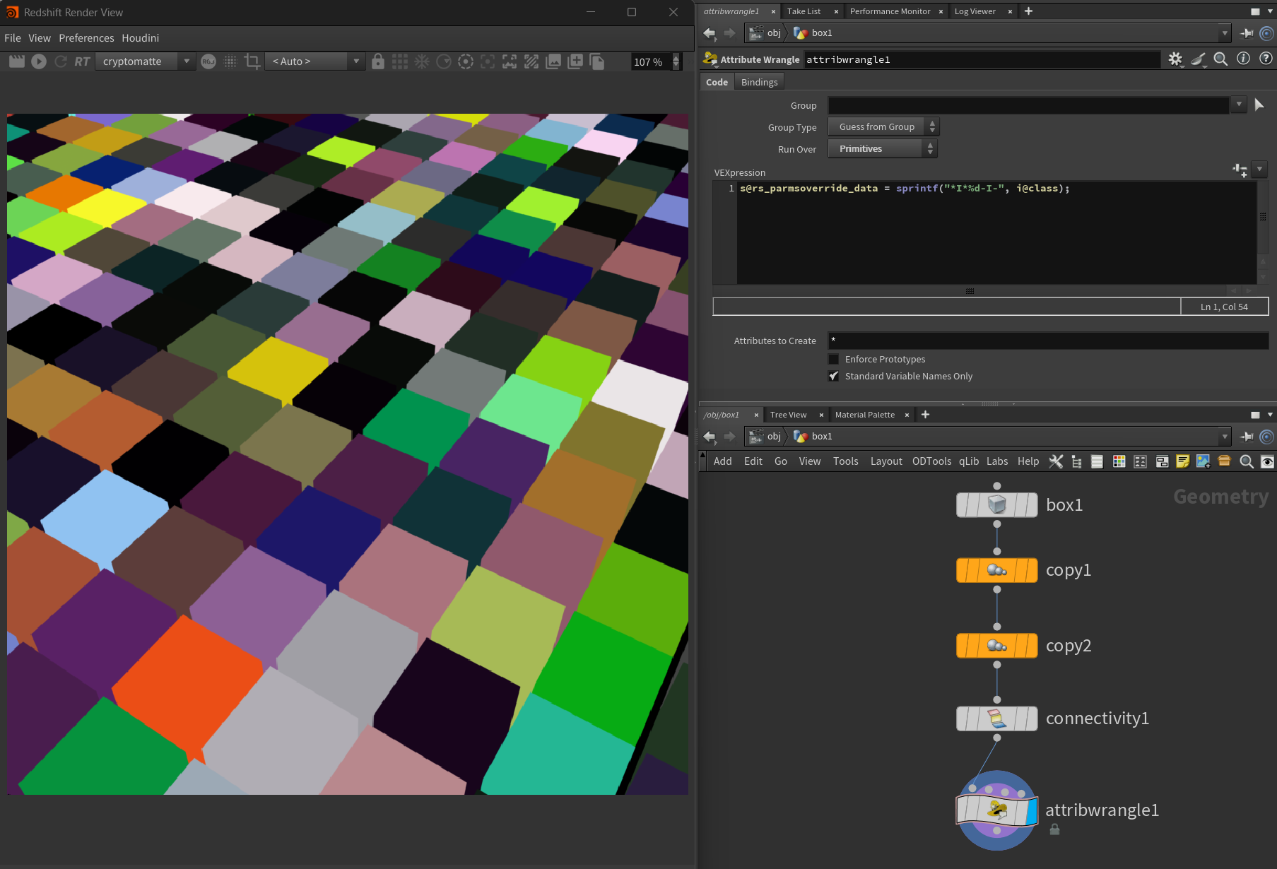 You can also add unique object ID's to SOP level objects or instances using the Redshift string attribute "rs_parmsoverride_data." The following example can be used to add a random object ID to SOPs objects: s@rs_parmsoverride_data = sprintf("*I*%d-I-", i@class);