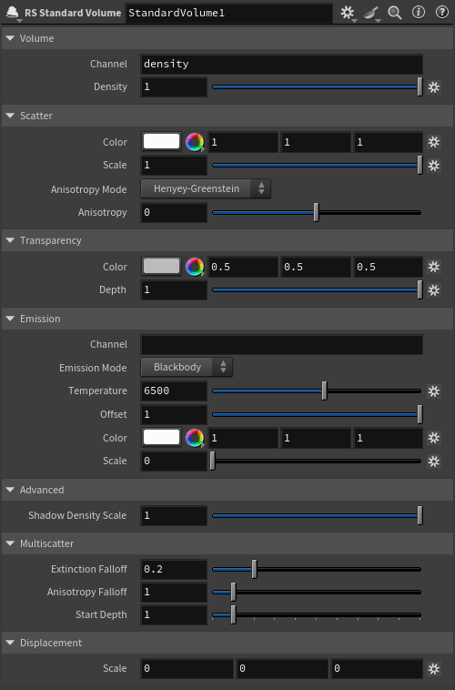 The Standard Volume shader is a physically based shader designed to render heterogeneous volumes like clouds, smoke, fire, and explosions. It combines an easy to use interface and controls while enabling greater flexibility and artistic control with the introduction of programmable volume shading. The Standard Volume shader accepts external shader inputs allowing for the creation and control of procedural volumes or the modification and displacement of existing volume grids.
