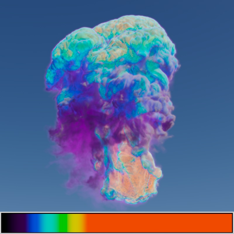 The Emission Channel built into the Standard Volume is left blank so it cannot mask the displaced temperature voxels.