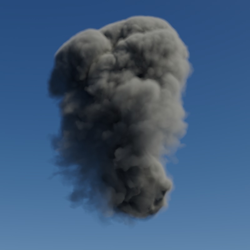 Smoke, by comparison, tends to scatter far fewer times since it is more isotropic (anisotropy closer to 0) and therefore sees diminishing returns as volume trace depth is increased. The difference between a trace depth of 11 and 31 is minimal with the demo example compared to the cloud images above.