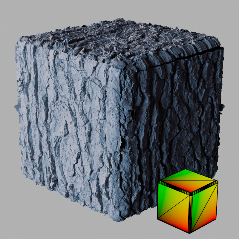 There are upsides and downsides to this adaptivity. On the positive side screen space can be much more efficient, like only adding more detail to objects close to the camera while far off objects have less detail, leading to savings on GPU memory and processing time that can be significant. Screen Space subdivision is also uniquely able to limit the amount of tessellation on objects outside of the camera frustum which can heavily reduce GPU memory usage. This is an optimization World Space subdivision is not able to do, instead, World Space mode will always tessellate objects — onscreen or not — as long as they meet the requirements set by the Minimum Edge Length and Maximum Subdivisions. However, since the subdivision level of an object can change as it moves across the screen the transition between different subdivision levels may be too noticeable and undesirable — for this reason screen space subdivision is frequently better suited to still images or animations where the transition is not as easy to see.