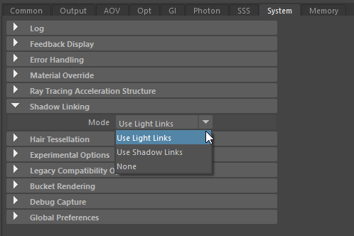 | Shadow Linking Mode:Use Light Links | Use Shadow Links | None |
