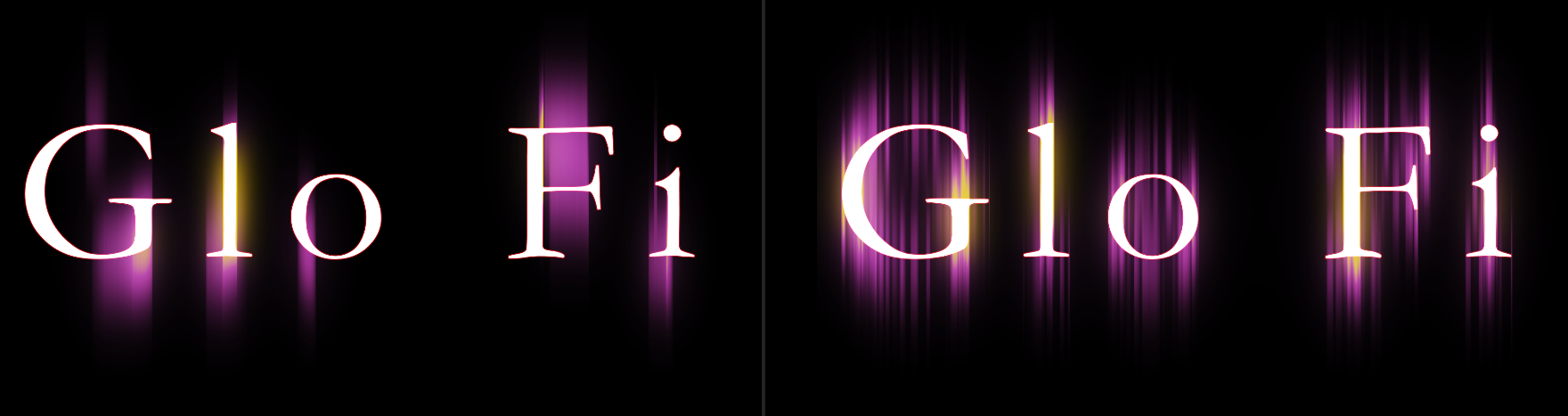 allows you to change the size of the effect's noise pattern. Lower numbers yield larger, smoother glows. Higher values introduce more detail and streaks. Below are values of 100 (left) and 1000 percent.