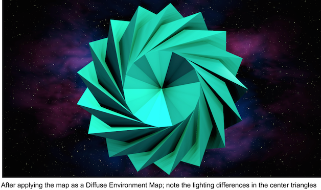 Diffuse Environment Map allows you to select a layer to use as a diffuse environment map. This is a map that determines where diffuse light hits the object. The diffuse map can be constructed from the reflection map.