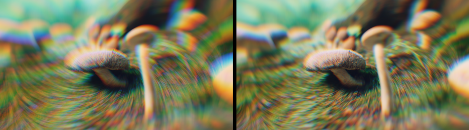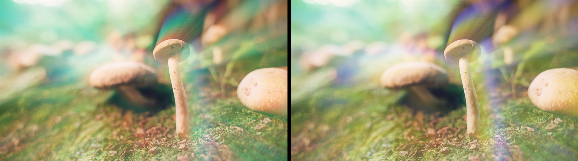 Chroma Tint sets the saturation along the effect when Chroma Style is set to Chromatic Spectrum. At a value of 0, the saturation is at maximum over the full range of the effect. At -100 (left, below), the start of the effect has no saturation while the end is fully saturated. At 100 (right), the end of the effect has no saturation while the start is fully saturated.