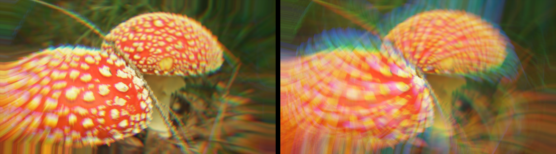 Completeness sets the range of the effect between the start and end positions. Here, you see the difference between 30 (left) and the maximum of 100 (right). Note how the image center remains only minimally impacted by the effect relative to the edges.