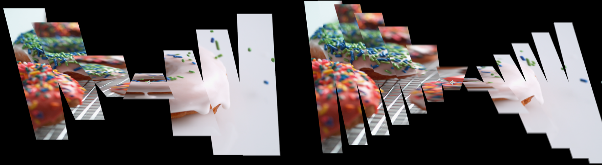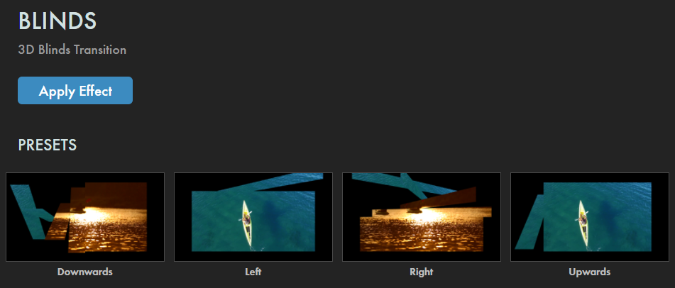 A 3D transition that divides the layer into sections that rotate in an offset fashion vertically or horizontally, revealing the second layer of footage.